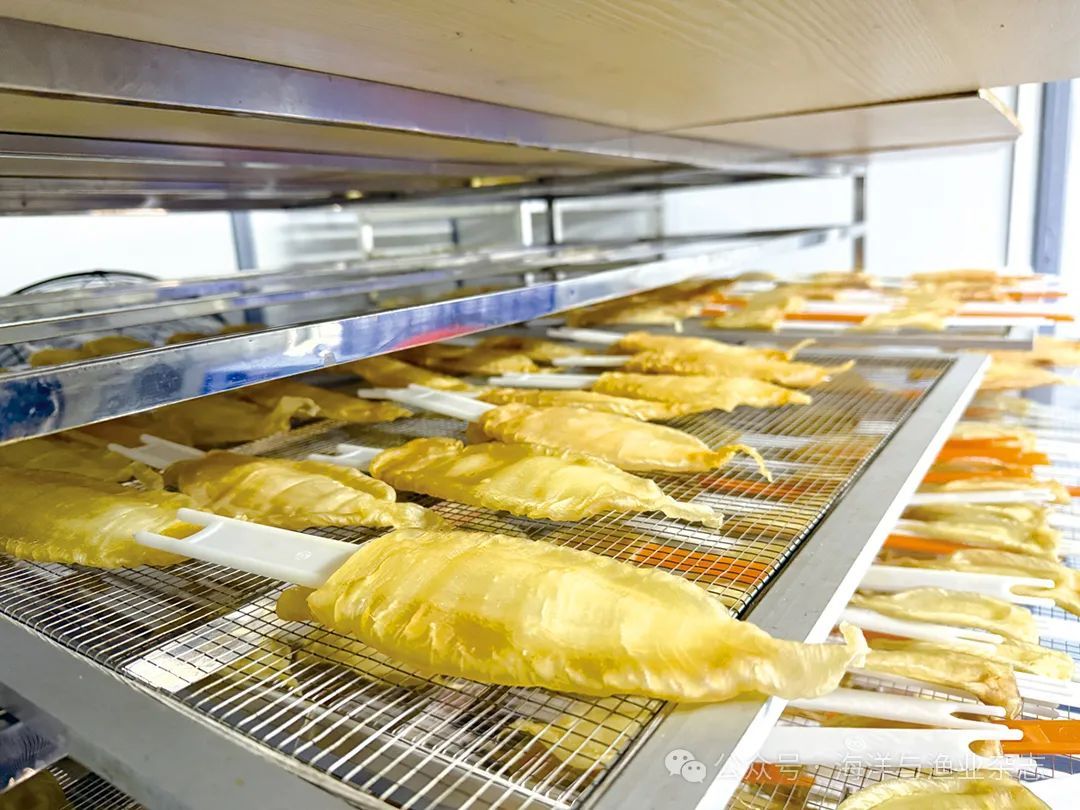 “一般来说,一批海鮸鱼收回来之后,当天就会进行取胶,隔天就进行鱼胶清洗,到制成干胶,大概需要一周的时间。”郑玉娜说,鱼胶有风干、晒干和阴干等方式,“我们最常用的是阴干+日晒,因为若是一直晾晒的话,持续高温很容易导致鱼胶变质,最好是阴干到6~7成之后再晒,更容易保存。”